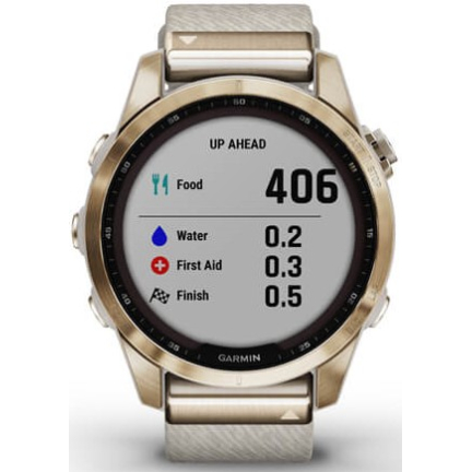 Garmin Fenix 7s Sapphire Solar Cream Gold Titanium / Cream Heathered Nylon Band